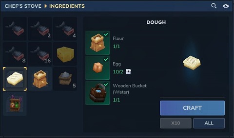 Egg(卵)は、CHEF'S STOVE(調理台)でDOUGH(生地)を作る時に必要になります。DOUGH(生地)でBREAD(パン)が作れますね。