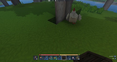捕まえたCHICKEN(ニワトリ)を、CHICKEN COOP(ニワトリ小屋)の近くで放ちます。CAPTURE CRATE(捕獲箱)を手に持って、左クリックで捕まえたCHICKEN(ニワトリ)を放ちました。