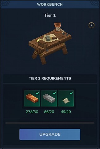 まず最初にWORKBENCH(作業台)をTier2にアップグレードします。