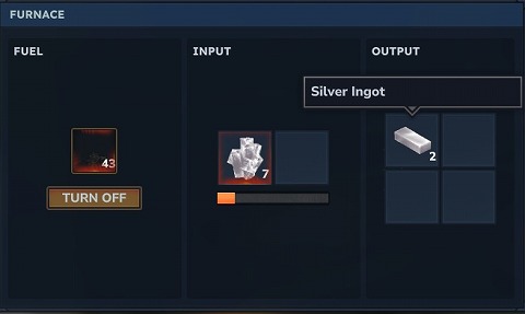 FURNACE(かまど)でSilver Ore(銀鉱石)を精錬すると、Silver Ingot(銀)を作ることができます。