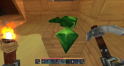 Thorium Ore(トリウム鉱石)は緑色の鉱石です。ツルハシで破壊すると、Thorium Ore(トリウム鉱石)が入手できました。