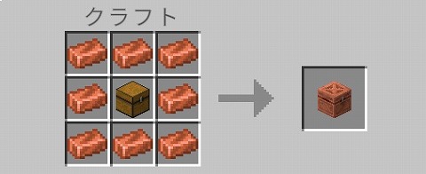 チェスト×1と銅インゴット×8で、銅チェストが作れます。