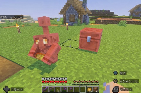 カッパーゴーレムは、銅チェストからアイテムを取り出して、近くのチェストに運んでくれます。上手く活用すれば、アイテム整理ができますね。