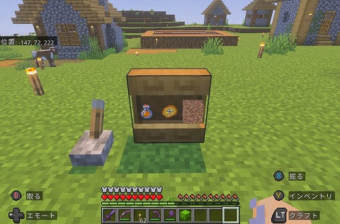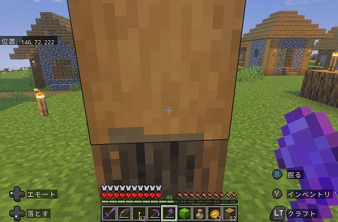 マインクラフトの棚の作り方を紹介しました。樹皮を剝いだ原木6個で、棚が作れますね。