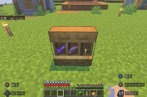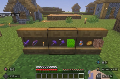 棚1個の場合は、アイテムスロットの右から3個のアイテムが、棚のアイテムと入れ替わります。