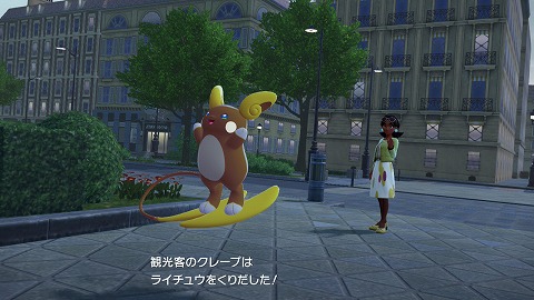 サイドミッション「アローラ地方のライチュウ」は、クエーサー社の前にいるクレープに話しかけると始まります。メインミッション「ミアレ防衛大作戦」をクリアすると出現しました。