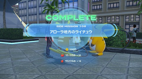 交換を終えると、サイドミッション「アローラ地方のライチュウ」クリアです。