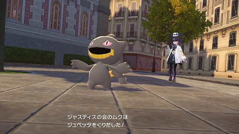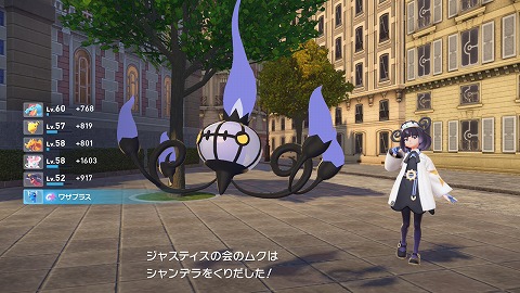 ムクとポケモン勝負を行います。ムクは、Lv45ジュペッタ(ゴースト)、Lv46パンプジン(ゴースト、くさ)、Lv46ゲンガー(ゴースト、どく)、Lv47メガシャンデラ(ゴースト、ほのお)を出してきました。