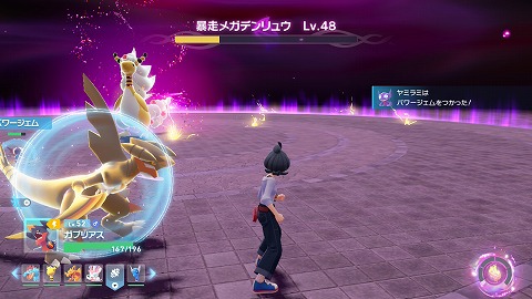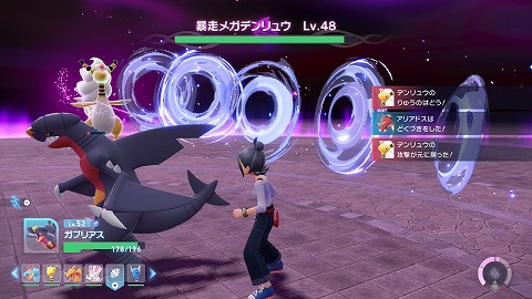Lv48暴走メガデンリュウ(でんき、ドラゴン)と戦います。メガデンリュウになると、タイプが変わりますね。