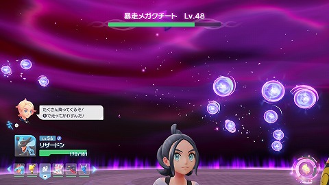 暴走メガクチートが落とすエネルギー結晶を拾って、エネルギーを溜めました。エネルギーを溜めて、メガシンカしたり、ワザプラスで攻撃していきます。