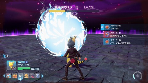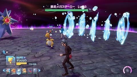 Lv59暴走メガスターミー(みず、エスパー)と戦います。デウロも一緒に戦ってくれました。
