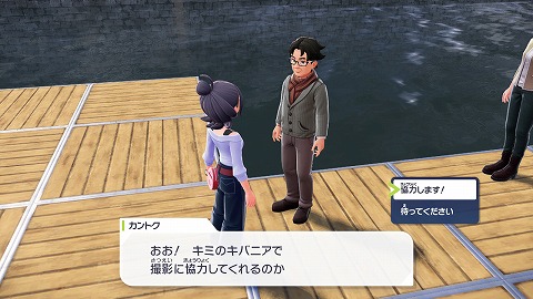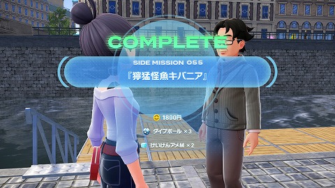 キバニアを手持ちポケモンに入れて、カントクに話しかけます。カントクに協力すると、サイドミッション055「獰猛怪魚キバニア」クリアです。
