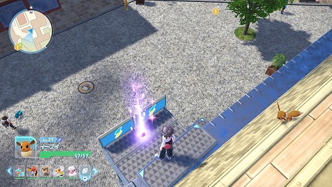 紫色に光るポケモンボールがある高台に向かって、ローリングすると高台の上に移動できました。紫色に光るポケモンボールを拾うと、カラフルなネジが入手できます。