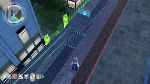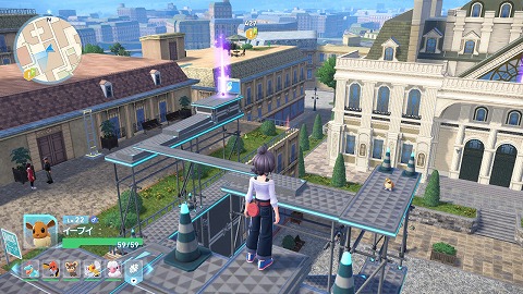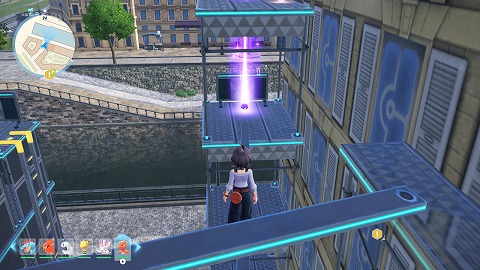 ノースサイドストリート沿いの建物の屋上に、ホロベーターで移動します。橋や鉄骨を渡って、建物の屋上を移動していきます。最後はハシゴで登ると、紫色に光るポケモンボールがありました。