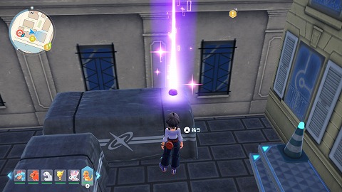 ブルー5番地の建物の屋上に、紫色に光るポケモンボールがあります。紫色に光るポケモンボールを拾うと、カラフルなネジが入手できます。