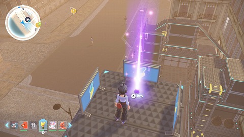 サイドミッション004「休憩中にひと勝負!」をクリアすると、ルージュ1番地のホロベーターが使えるようになります。ホロベーターでルージュ1番地の屋上に移動しました。