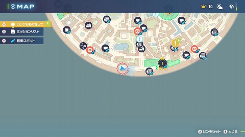 南にあるブルー7番地の建物の屋上(東)から、ロトムグライドでボンヤーリ公園の建物の屋上に飛び移ります。ボンヤーリ公園の建物の屋上を移動していくと、カラフルなネジが拾えました。