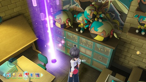 ラシーヌ工務店の中に紫色に光るポケモンボールがありました。紫色に光るポケモンボールを拾うと、カラフルなネジが入手できます。