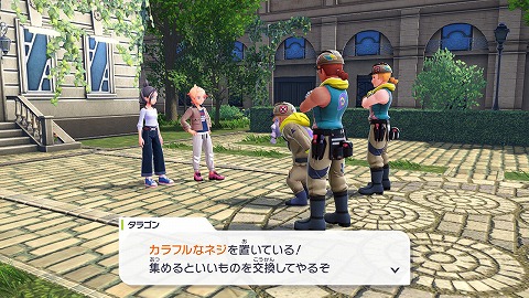 ベール6番地のラシーヌ工務店の前にいる人が、カラフルなネジとカナリィぬいを交換してくれます。カナリィぬいにはいくつか種類があり、カナリィぬいの種類によって効果が異なっています。
