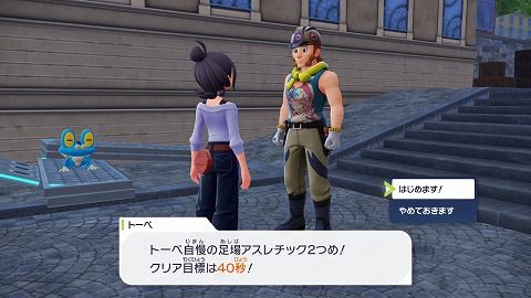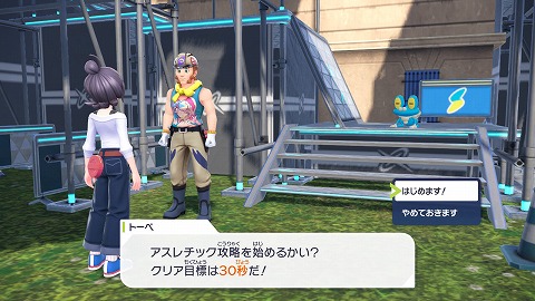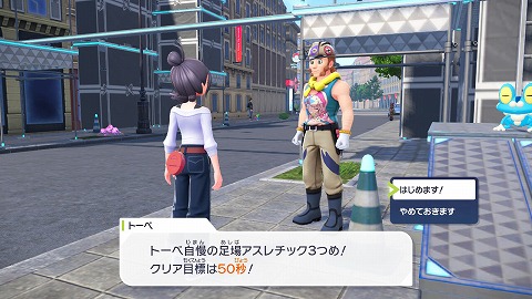 ポケモンセンター:ルージュの近くですね。3つ目のアスレチックの前にいるトーベに話しかけて挑戦します。クリア目標は50秒です。