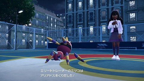 サイドミッション104「わたしはずーっとむしタイプ」は、ルージュ7番地のバトルコートにいるミツコに話しかけると始まります。メインミッション35「ランクAをめざして」を進めると出現しました。
