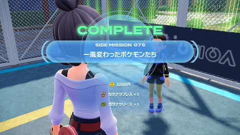 バカンにポケモン勝負で勝利すると、サイドミッション075「一風変わったポケモンたち」クリアです。