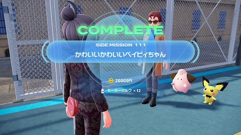 カホコにポケモン勝負で勝利すると、サイドミッション「かわいいかわいいベイビィちゃん」クリアです。