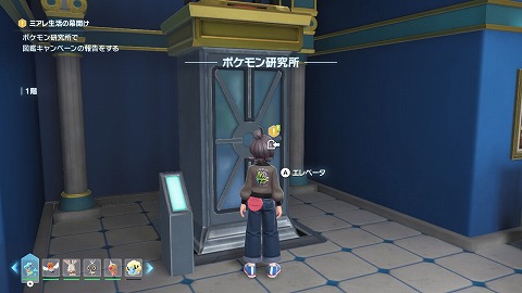 ポケモン研究所に入って、エレベータで3階:所長室に移動します。