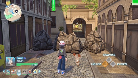 わざマシンでホルビーに「いわくだき」を覚えさせて、道路の岩にいわくだきを使うと、岩を壊すことができます。岩を壊して、ホテルZに戻りました。