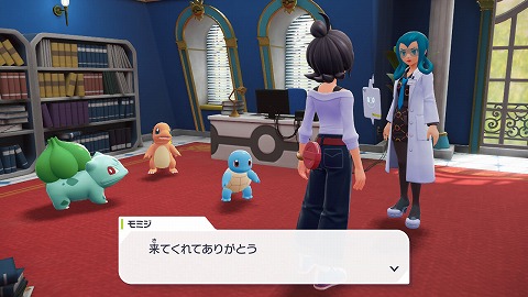 ポケモン研究所3階の所長室に初代御三家ポケモンがいます。近づくとイベントとなり、初代御三家ポケモンから1匹を選んで仲間にすることができました。