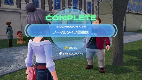 マーノルにポケモン勝負で勝利すると、サイドミッション028「ノーマルタイプ最強説」クリアです。