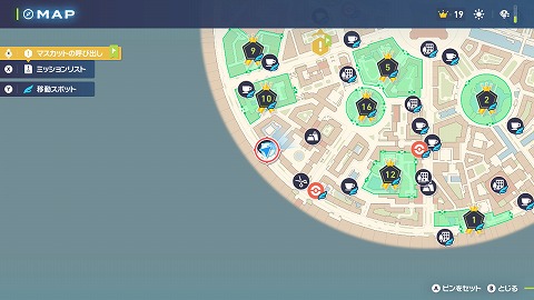 サイドミッション093「エレザードのお部屋探し」は、カフェ・ソレイユにいるサントに話しかけると始まります。メインミッション31「マスカットの呼び出し」を開始すると出現しました。