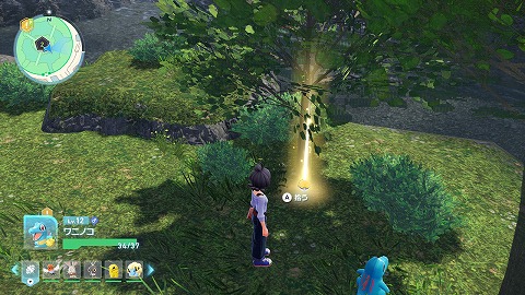 いわくだきで岩を壊すと、黄色に光るポケモンボールがありました。Aボタンで拾うと、わざマシン「ずつき」が入手できます。