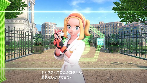 3番ワイルドゾーンに近づくとイベントとなり、ジャスティス会のコタネとポケモン勝負が発生します。