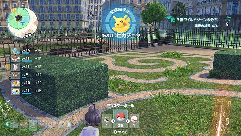3番ワイルドゾーンで、メェークル、フラベベ、ニャスパー、ヤンチャム、シシコ、ピカチュウが捕まえられました。サイドミッションで必要となるピカチュウを捕まえておきたいです。