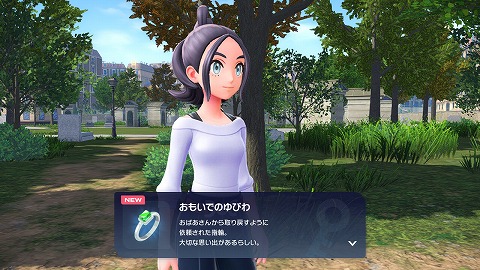 ヤミラミを倒してポケモンボールで捕まえると、おもいでのゆびわが手に入りました。4番ワイルドゾーンの入口にいるメモワールにおもいでのゆびわを渡すと、サイドミッション3「墓地のヤミラミ」クリアです。