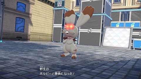 目撃した場所にいるトラヴェルに話しかけると、野生のホルビーとの勝負となります。オヤブンのホルビーですね。