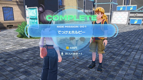 オヤブンのホルビーに勝利すると、サイドミッション001「でっけぇホルビー」クリアです。