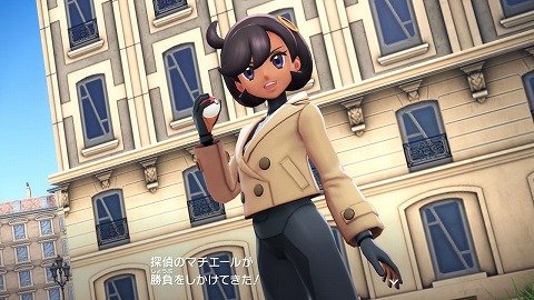 探偵事務所から外に出て、探偵事務所近くにいるマチエールに話しかけると、ポケモン勝負することになりました。