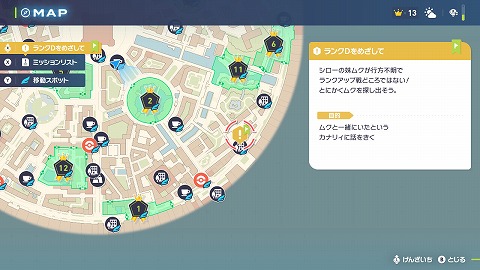 ポケモンレジェンズZAのメインミッション19「ランクDをめざして」攻略情報でした。ムクを探して色々な場所に移動するメインミッションでしたね。
