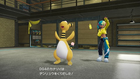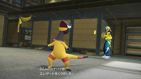 カナリィは、Lv42エレザード(でんき、ノーマル)、Lv43デンリュウ(でんき)、Lv43マッギョ(じめん、でんき)、Lv44メガシビルドン(でんき)を出してきます。