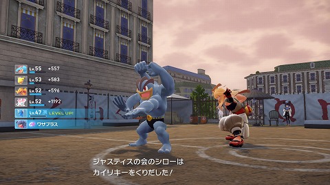 シローは、Lv45ヘラクロス(むし、かくとう)、Lv46チャーレム(かくとう、エスパー)、Lv46カイリキー(かくとう)、Lv47メガタイレーツ(かくとう)を出してきました。