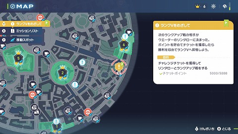 デウロにポケモン勝負で勝利すると、ランクアップ戦の対戦相手が決まります。チケットポイント5000pt集めることになりました。