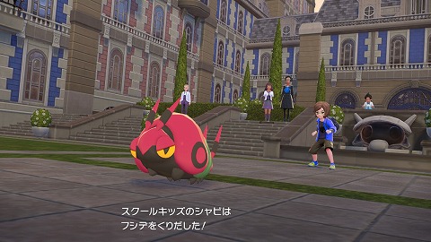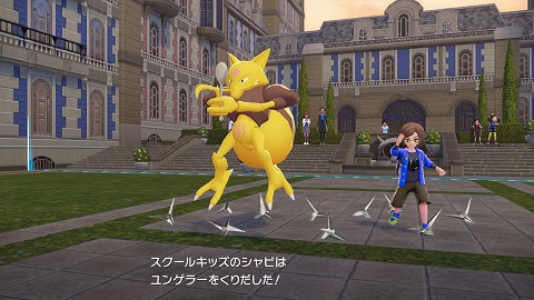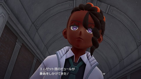 ホテルZから外に出て、ピュールに話しかけてポケモン勝負を行います。