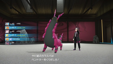 カラスバは、Lv50アーボック(どく)、Lv51ギャラドス(みず、ひこう)、Lv51ロズレイド(くさ、どく)、Lv52メガペンドラー(むし、どく)を出してきました。