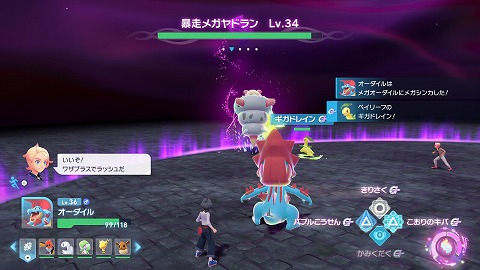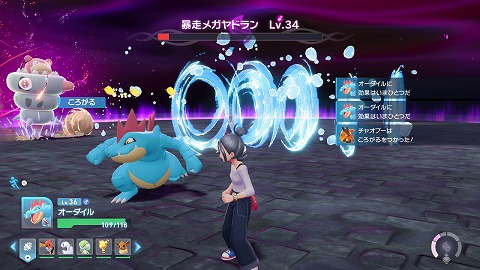 メガエネルギーのゲージが溜まったら、Rスティックを押し込んで、メガシンカしました。