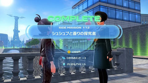 サイドミッション「シュシュプと香りの探究者」は、セゾン運河の西の端にいるパルファに話しかけると始まります。メインミッション「ミアレ防衛大作戦」をクリアすると出現しました。