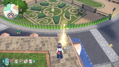 アスレチックを利用して、建物の屋上に移動します。建物の屋上の北の端に黄色に光るポケモンボールがありました。