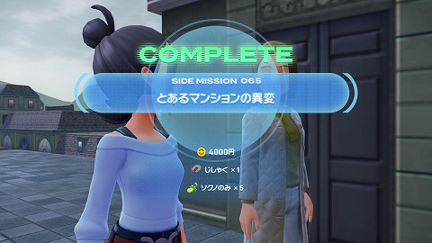 デデンネとの勝負に勝利すると、サイドミッション065「とあるマンションの異変」クリアです。