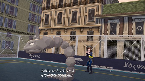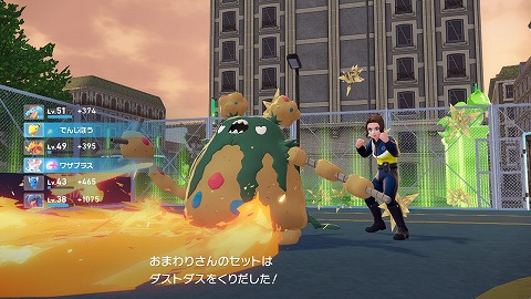 セットのポケモンはトラップ技を使ってきます。フィールドに効果が残る技なので、トラップがある場所から離れて、ポケモンの位置を誘導して戦いました。